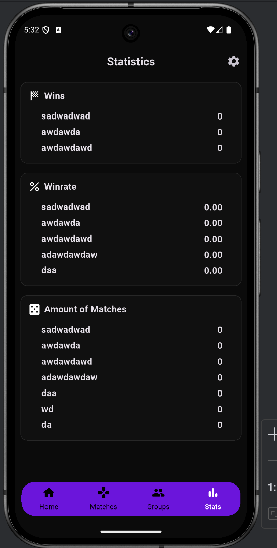 einfach "No matches played yet" anzeigen besser oda?