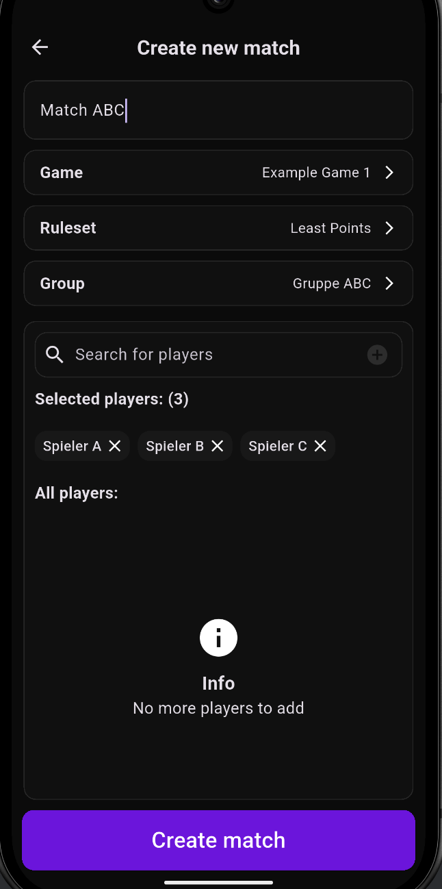 Bereits Ausgewählte Spieler durch eine Gruppe werden in der Player Selection beim Create Match View nicht aussortiert