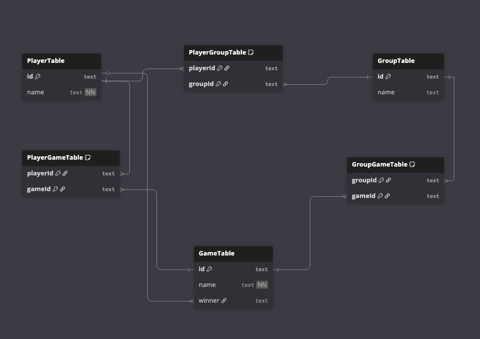 Die bestehende Table wird muss in Relation mit den Spielern und den Gruppen gestellt werden, es müssen Punkte gespeichert werden und auch die Möglichkeit implementiert werden, einzelne Spieler zu Spielen hinzuzufügen