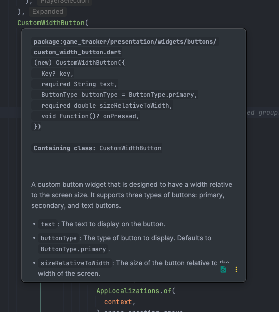 Die Doc-Strings für die Klassen sind aktuell falsch gesetzt. Damit die Dokumentation auch richtig angezeigt wird, muss diese direkt über dem Konstruktor stehen.