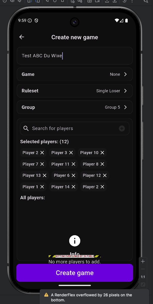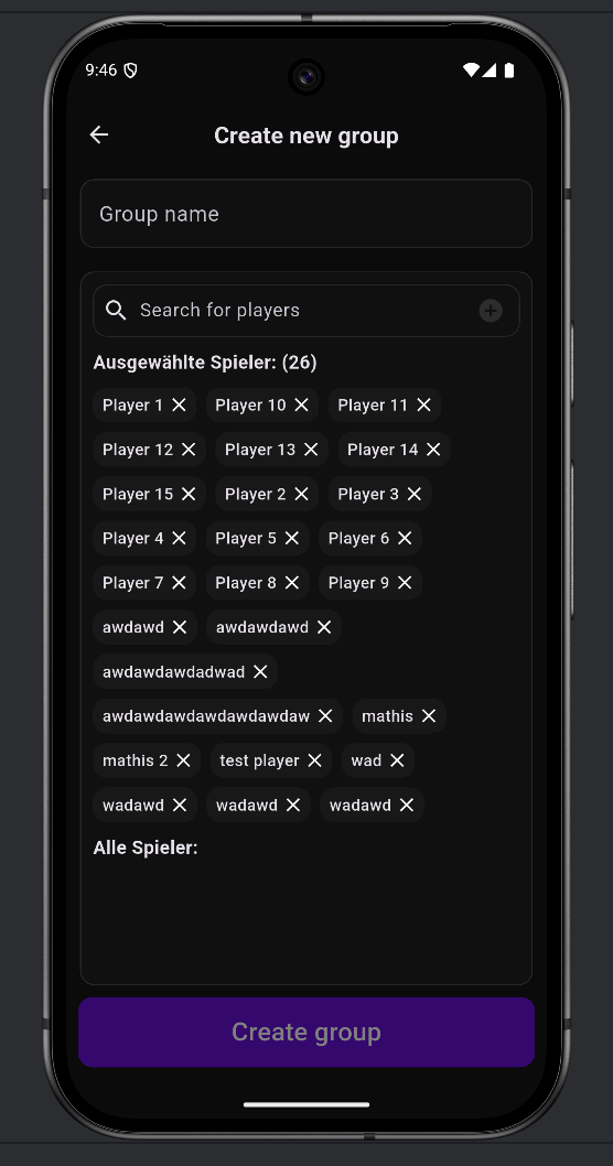 CreateGameView()bei einer großen Anzahl an Spielern nicht erkennbar, aber vorhanden (Test mit ScrollView).Schritte zur Reproduktion