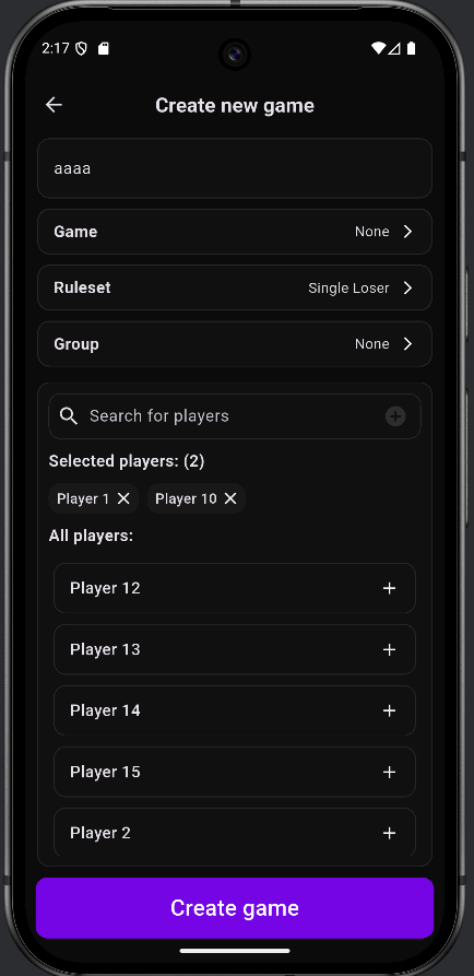 Ja, ein Game ist ja nur eine Kategorisierung (um danach Statistiken zu machen) und ein Ruleset. Wir könnten aber auch sagen, es muss immer ein Game erstellt werden, wenn du ein Match erstellen willst. Aber ich wollte halt vorbeugen, dass man für jedes Match ein Game erstellen muss. Andererseits muss es sonst im nachhinein vllt noch die möglichkeit geben, einem Match ein Game hinzuzufügen